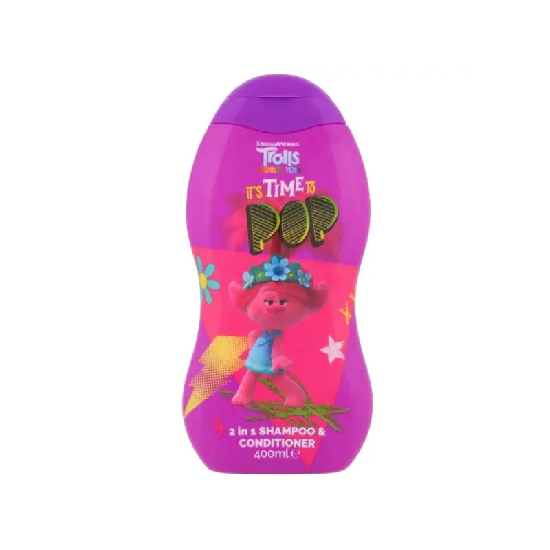 Dětský šampon a kondiconér 2v1 v lahvičce s motivy z pohádky Trollové.