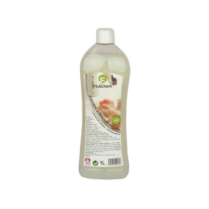 Tekuté krémové mýdlo s antibakteriální přísadou.