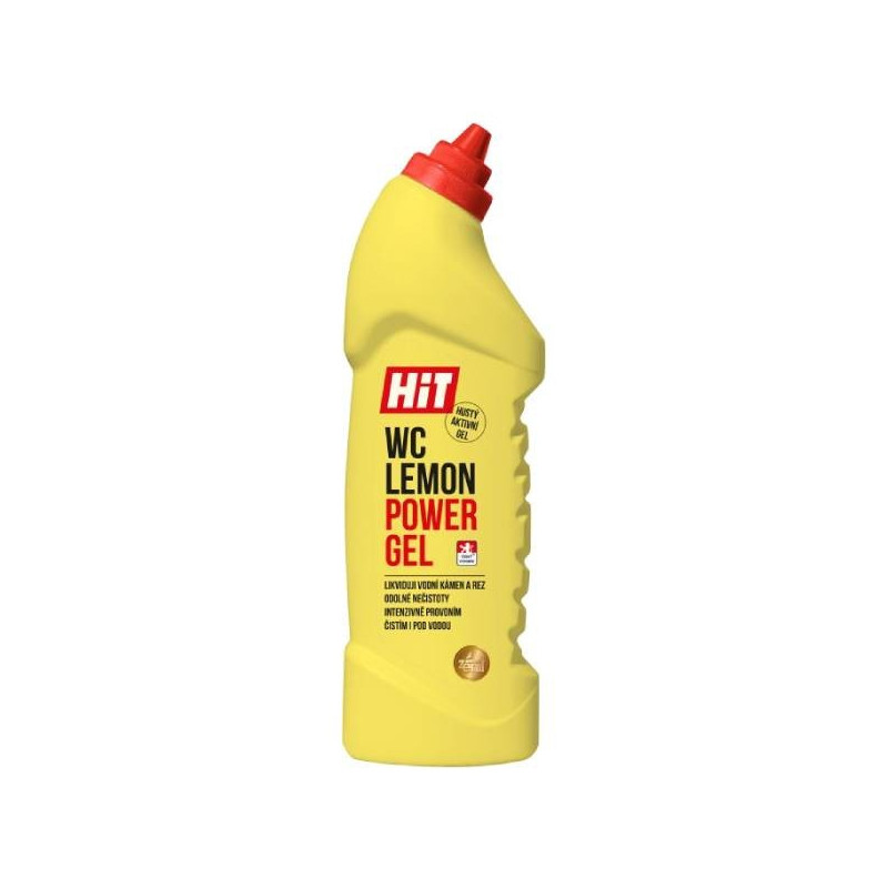 Gelový prostředek Hit WC na odstranění rzi, vodního kamene, zbytků mýdla, močových usazenin a pachů. Hustý gel působí i pod vodní hladinou. Používá se na běžnou údržbu toalety a slouží jako preventivní ochrana proti tvorbě vodního kamene a rzi. Vhodný na WC mísy, umyvadla, vany, sprchové kouty, baterie, obklady,dlažby, keramické dřezy.