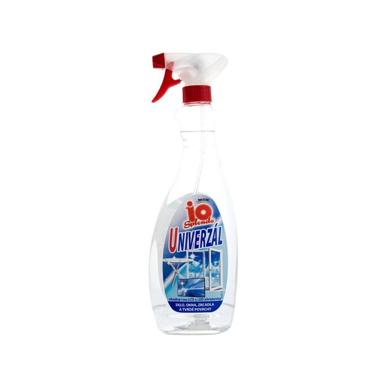 Čistící prostředek IO Splendo 750 ml Univerzál s alkoholem na tvrdé omyvatelné povrchy – okna, zrcadla, lustry, kachličky, plasty, laminátový nábytek apod. Nezanechává šmouhy a není třeba oplachovat. Vhodný i na LCD a LED obrazovky. Nepoužívejte na teplé povrchy (okna vystavená slunci, rozsvícené lampy).