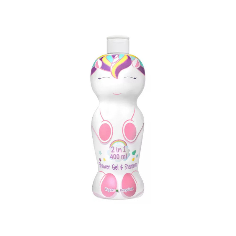 Unicorn 2v1 sprchový gel a šampón v objemu 400 ml je jemný, hypoalergenní a dermatologicky šetrný produkt pro každodenní mytí dětské pokožky i vlasů.