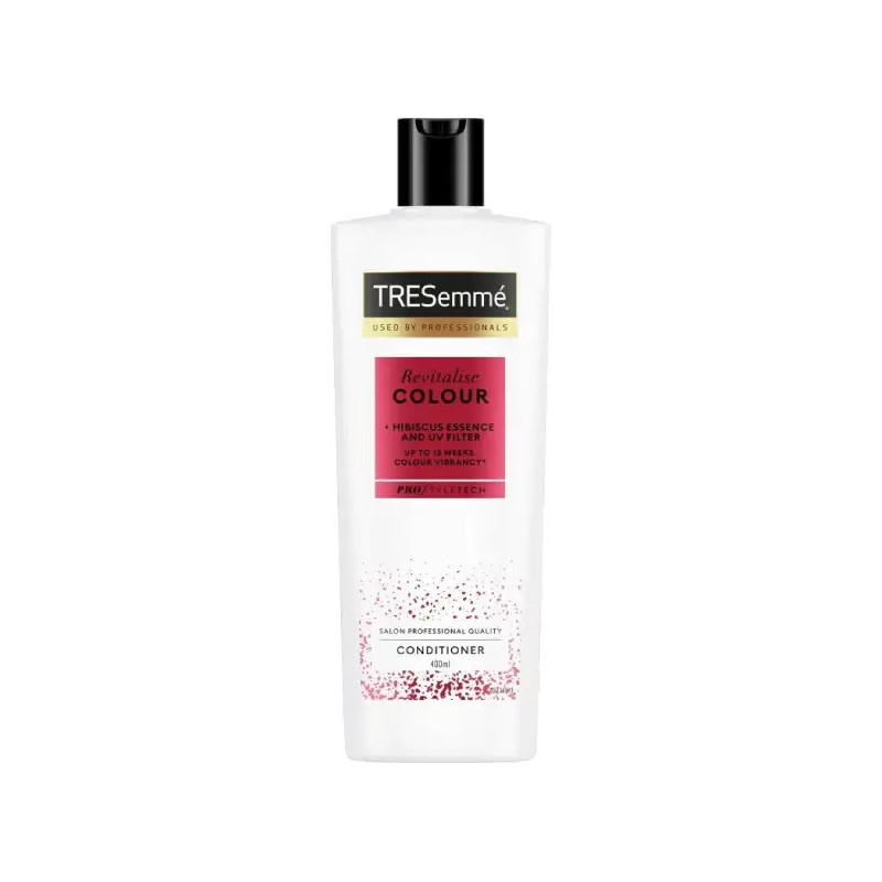 Kondicionér pro barvené vlasy TRESemmé Revitalise Colour ProStyleTech obsahuje ibiškový extrakt a UV filtr, takže vaše vlasy budou krásně vyživené a zároveň lesklé a zářivé. Profesionální technologie Pro Style Technology™, která byla vyvinuta vědeckými experty, je založena na obsahu účinných aminokyselin a Ceramidů a postará se jak o silnější a poddajnější vlasy, tak o uhlazenější účes. Složení kondicionéru dodává dlouhotrvající výdrž a sytost barvy vašich vlasů, a to až po dobu 12 týdnů. S kondicionérem na barvené vlasy se můžete těšit na zářivé a hebké vlasy!
