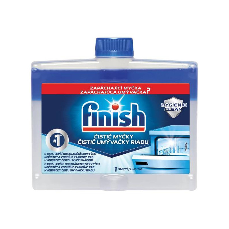 Finish Čistič myčky odstraňuje mastnotu, vodní kámen a navíc prodlužuje životnost vaší myčky. Doporučuje se používat čistič myčky pravidelně, alespoň jednou měsíčně a prázdnou myčku nechat umýt teplotně nejvyšším mycím procesem.