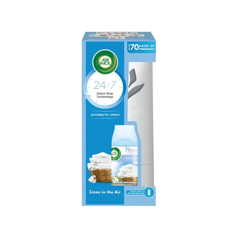 Díky své technologii vám osvěžovač vzduchu Air Wick poskytne až 70 dní nepřetržité vůně. Vybrat si můžete ze 3 nastavení pro dosažení požadované intenzity vůně. Osvěžovač vzduchu můžete pověsit na zeď nebo umístit na polici či skříňku. Balení obsahuje automatický osvěžovač a náplň o objemu 250 ml.