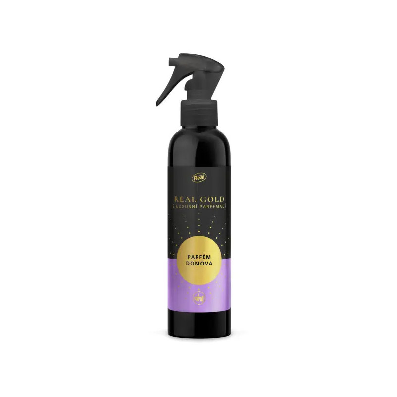 Osvěžovač vzduchu Real Gold Parfém Domova odstraňuje nepříjemné pachy a zanchvá luxusní vůni květů lilie, fialky a jasmínu s podtónem svěžích mandarinek a kořenitou vůní santalového dřeva a jantaru.