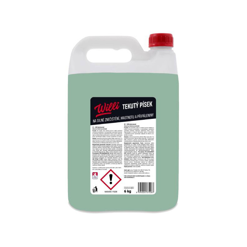 Willi abrazivní čisticí písek, který odstraňuje mastnotu, hrubé nečistoty, usazenou špínu a připáleniny. Vhodný do průmyslu. Na moderní i tradiční povrchy.