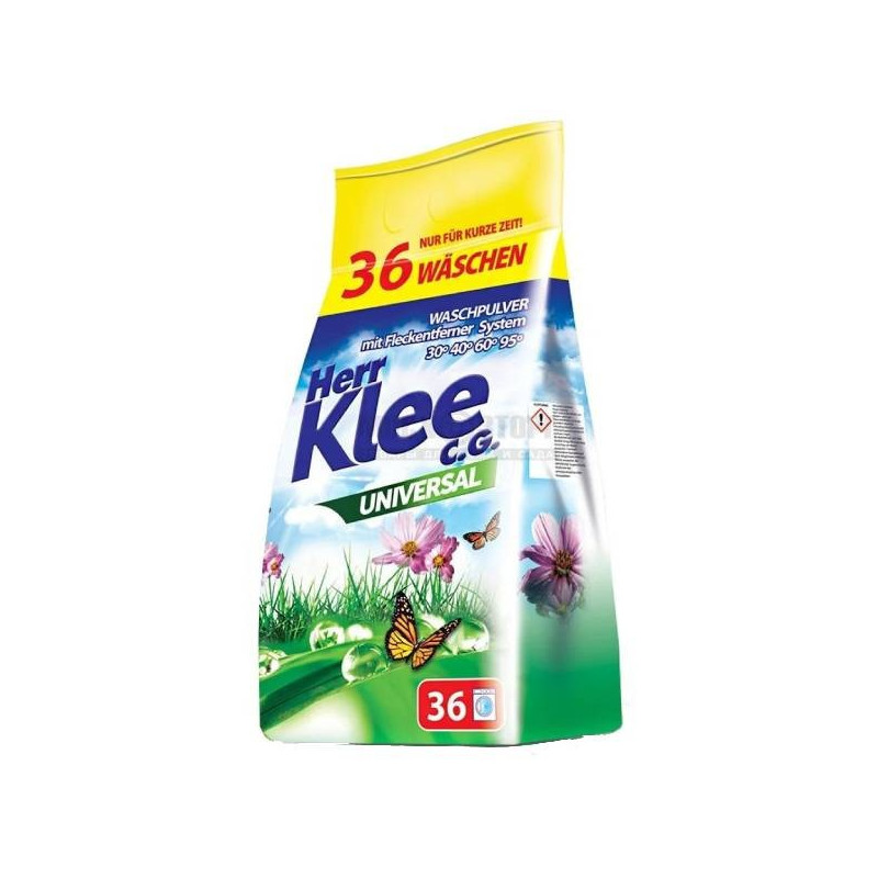 Klee Universal je prací prášek s výbornými pracími vlastnostmi určený pro praní stálobarevného prádla. Pro všechny typy praček a pro ruční praní. Prací prášek obsahuje složky, které chrání Vaši pračku před usazováním vodního kamene. Před praním je doporučeno rozpustit prášek v teplé vodě.