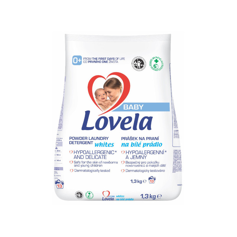 Lovela prací prášek na bílé prádlo je hypoalergenní prací prášek speciálně vyvinutý pro jemnou pokožku dětí a miminek. Jeho složení si poradí se skvrnami, a to i při praní na nižší teploty.