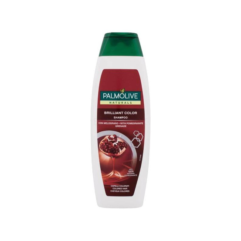 Šampon Palmolive Brilliant Color obsahuje UV-filtr a výtažky 100% přírodního původu z granátového jablka, perel a mandlového oleje.