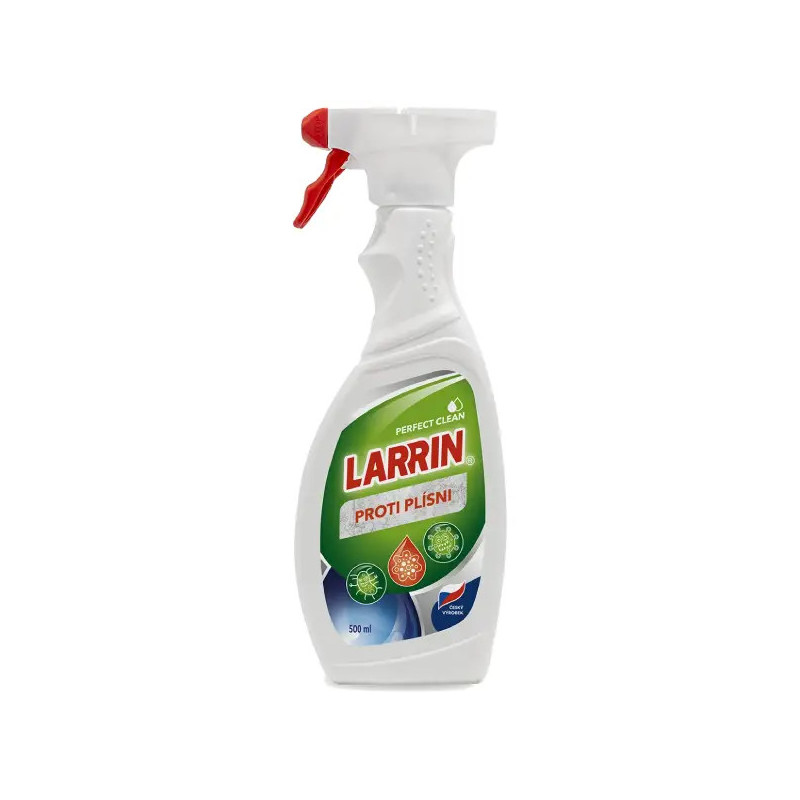 Larrin Proti Plísním Extra je určen k odstraňování plísní a dezinfekci veškerých omyvatelných povrchů (plastové, laminátové, smaltové, keramické, skleněné apod.), které odolávají alkáliím. Má bělící, fungicidní a dezinfekční účinek.